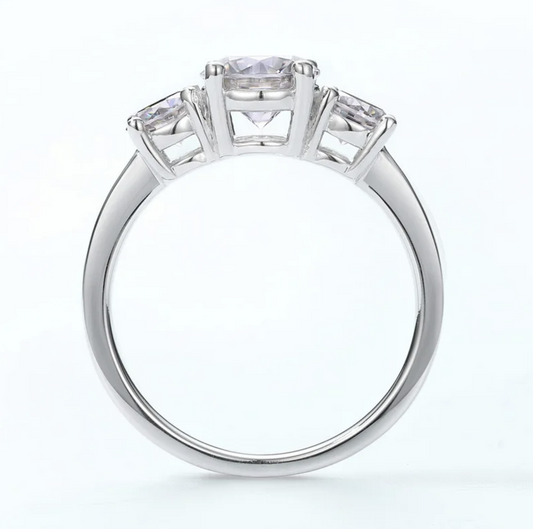 2Ct Moissanite Three-Stone Ring, 925 Sterling Silver, Round Cut, VVS1 Clarity, D Color, Gift LED Light Heart Ring Box Included