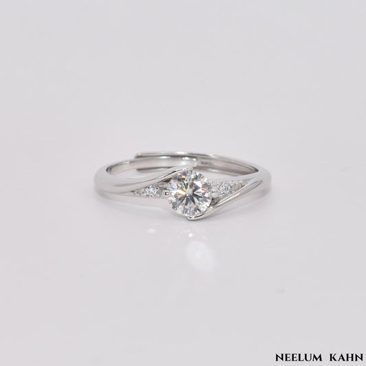 Certified 1Ct Moissanite Diamond Engagement Ring Adjustable
