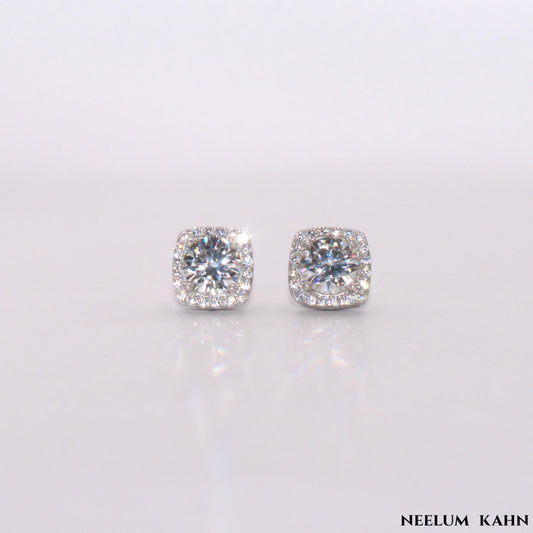 Certified 2Ct Moissanite Stud Earrings – Square 925 Silver