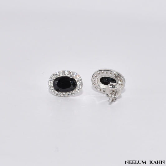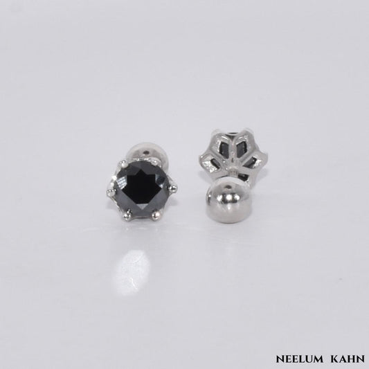 Solid 925 Sterling Silver Black Zircon Stud Earrings for Men & Women