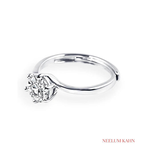 Certified 1Ct Moissanite Diamond Engagement Ring Adjustable