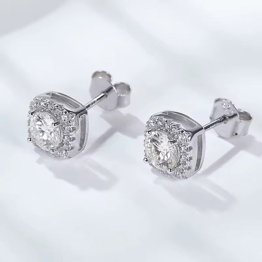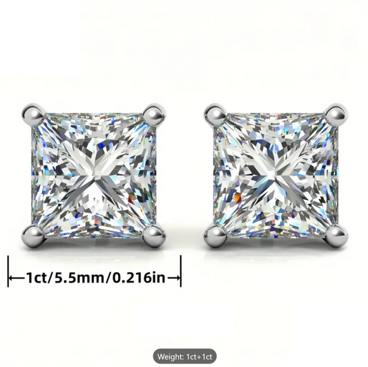 Certified 2Ct Moissanite Stud Earrings – Square 925 Silver