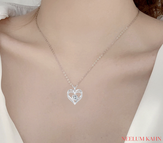 Sterling Silver Moissanite Heart Necklace, 0.5Ct Round Cut VVS1, 18.2 Inch Chain | Gift Jewelry Box Included