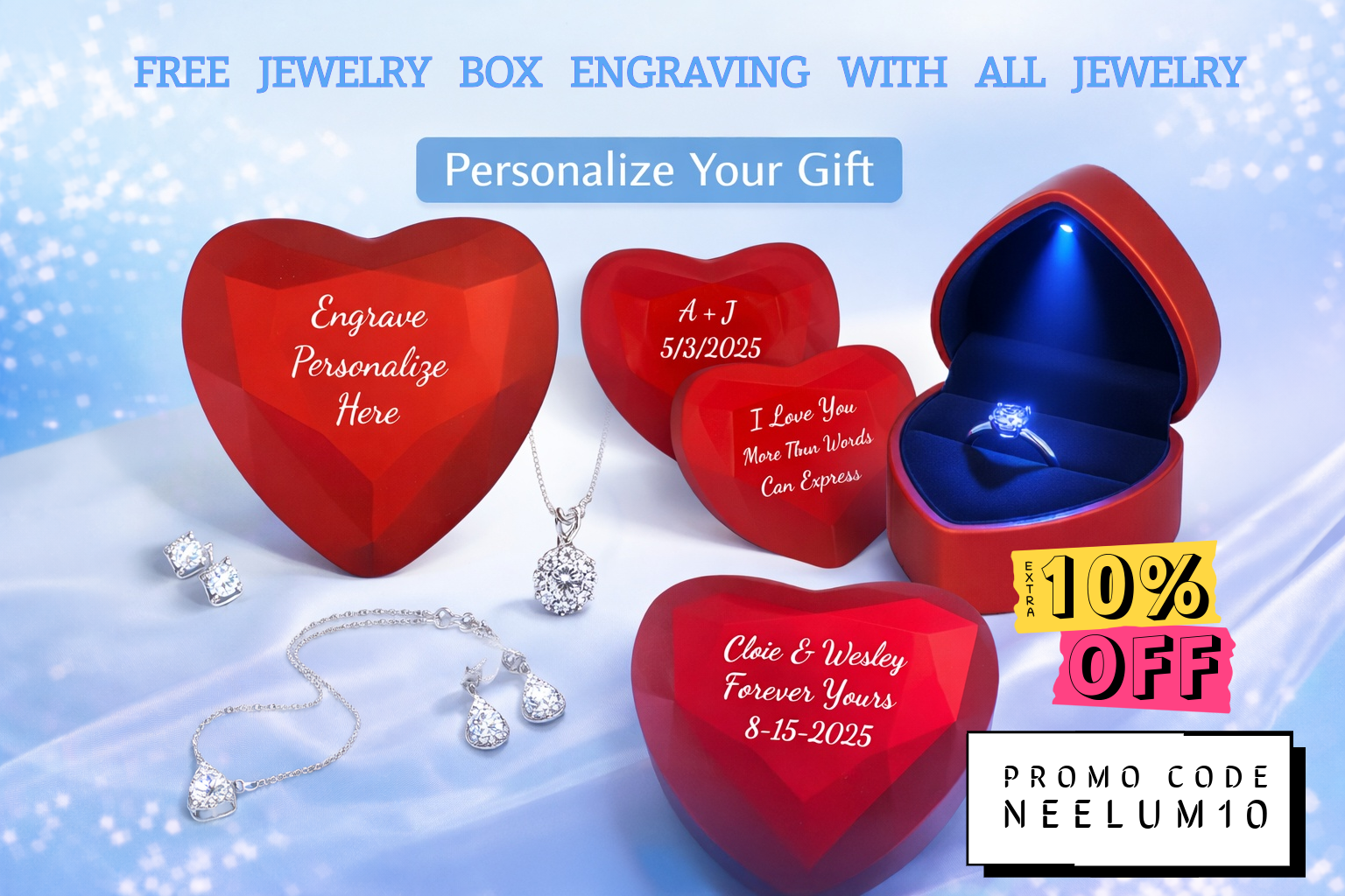 Custom Text Engraved Heart-Shaped Red LED Ring Box – Personalize Proposal & Gift Box