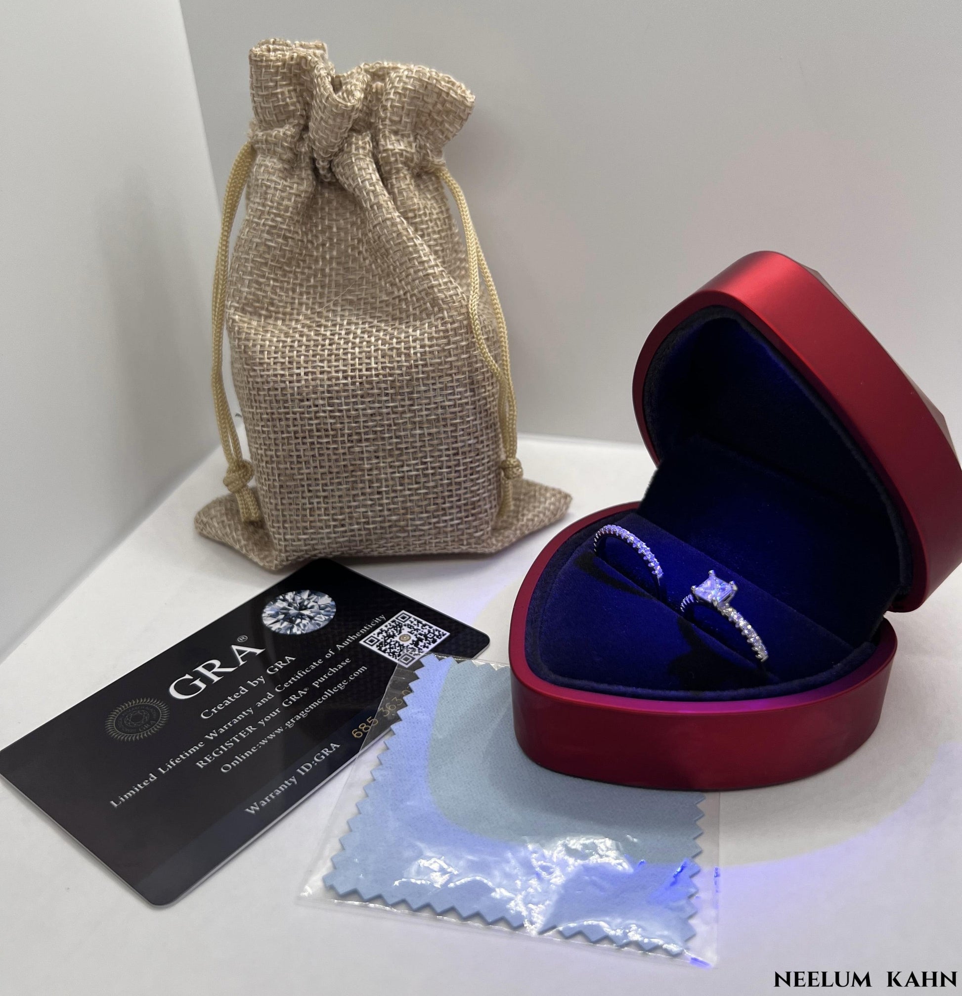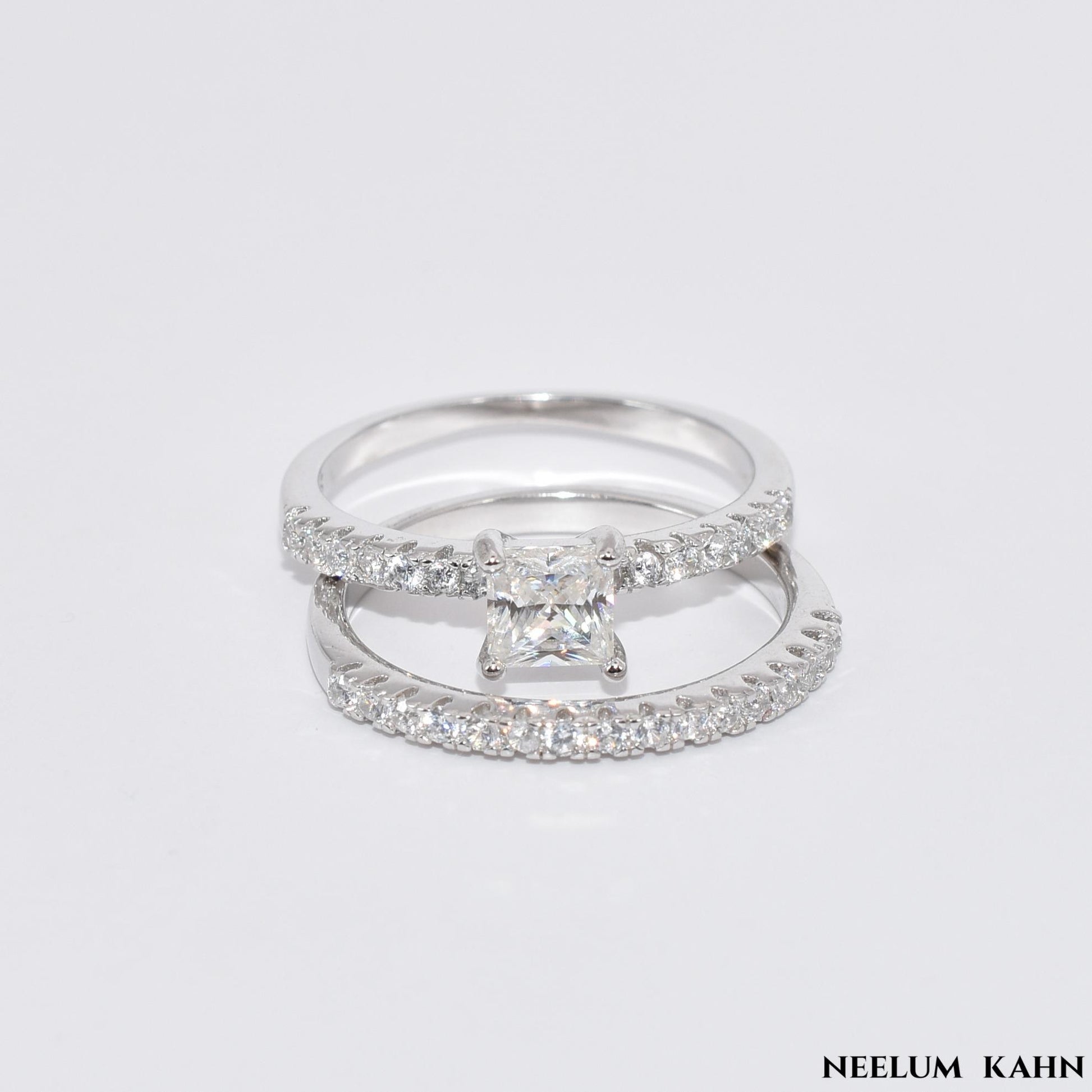 Enjoy free shipping on our new Certified 1Ct Moissanite Diamond Princess Cut Band Set Rings. This stunning ring features a Color D, Clarity VVS1 stone set in solid 925 Sterling Silver. Available in many sizes, it's perfect for proposals, engagements, weddings, and anniversaries. Includes paperwork and a wooden jewelry box.