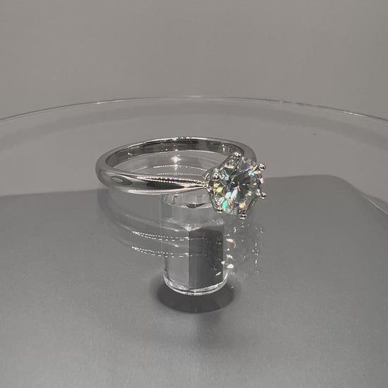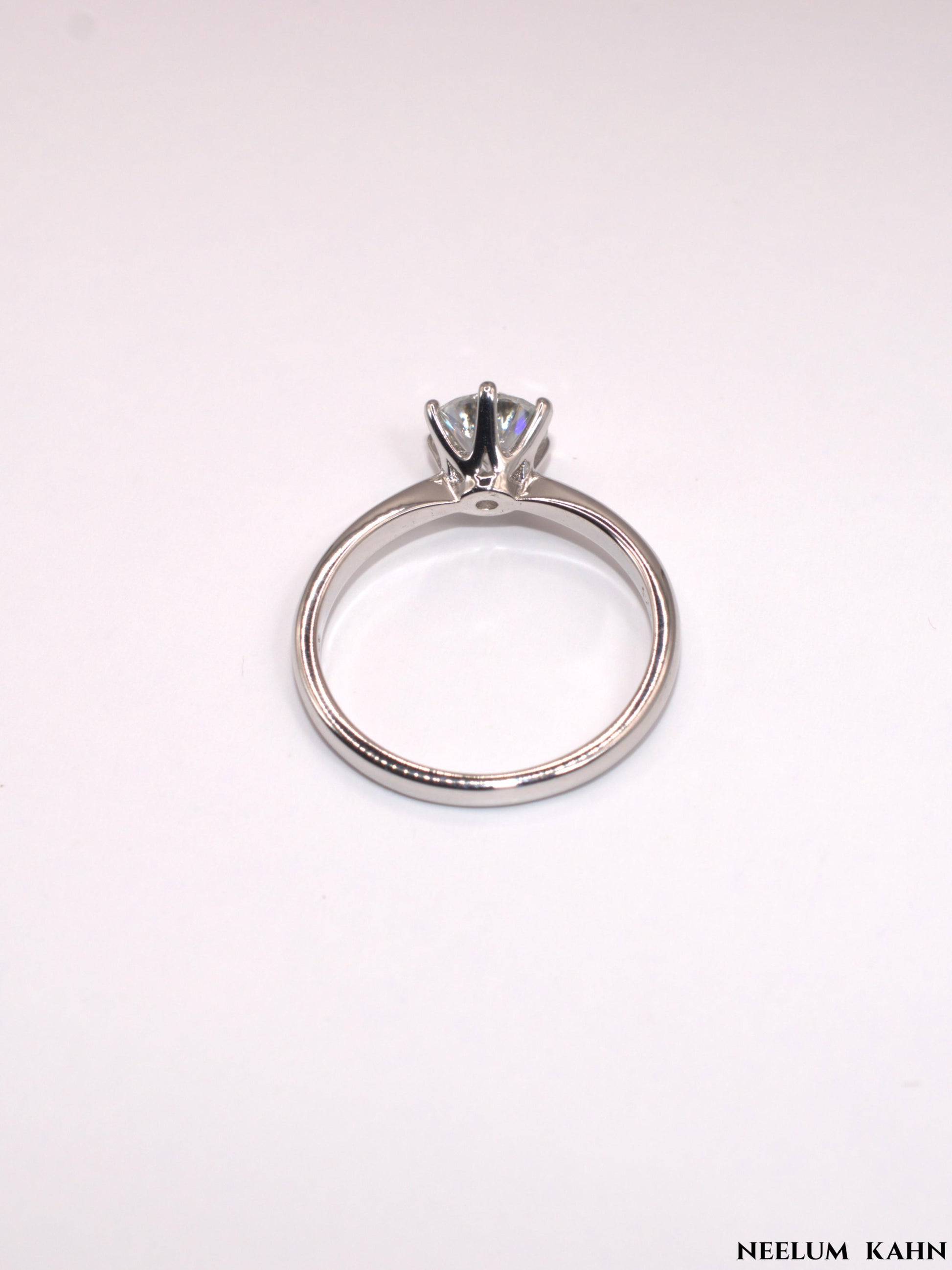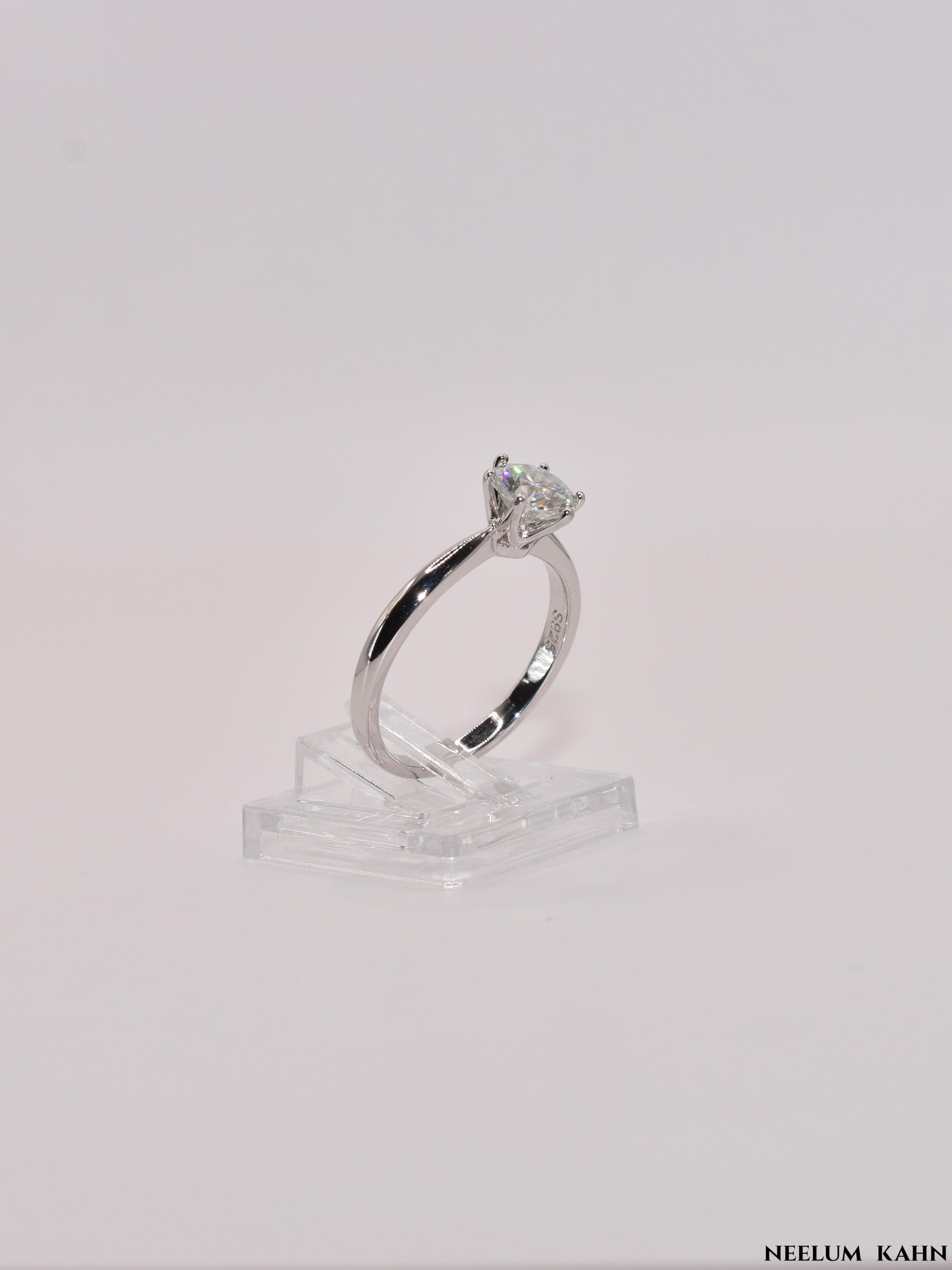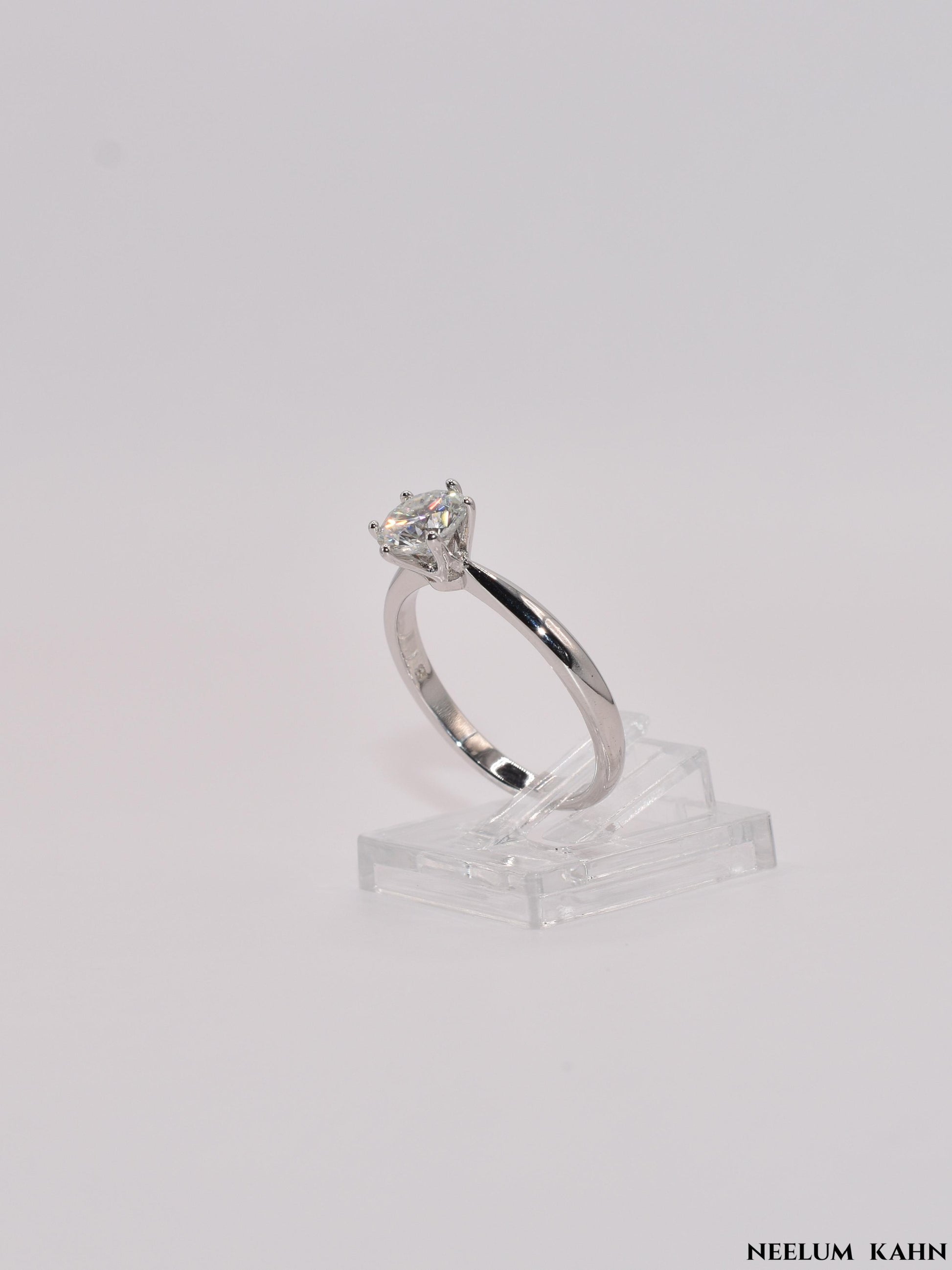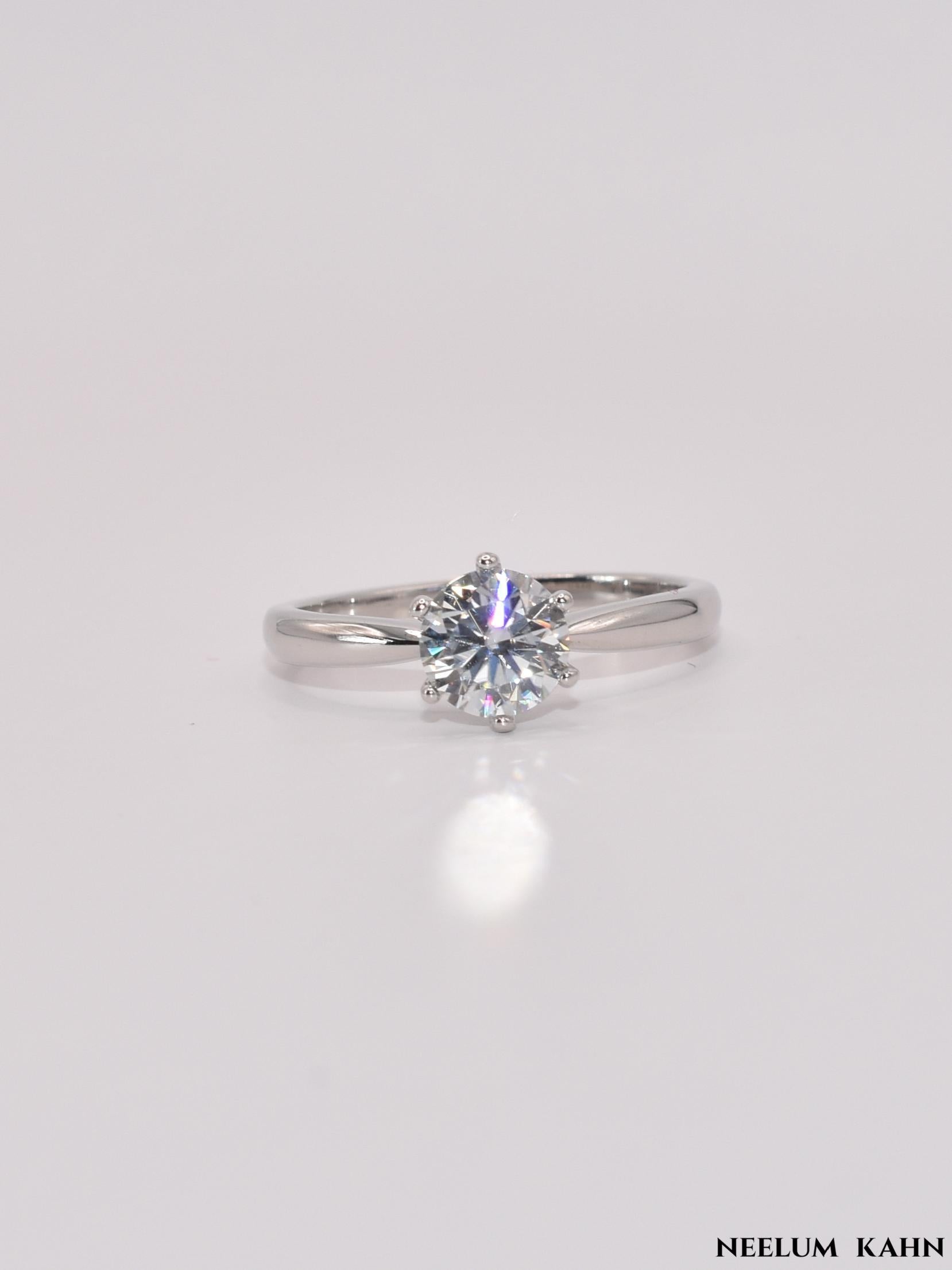 Certified 1ct Moissanite Diamond Ring in Sizes 5-9. White D color, 925 Sterling Silver Eternity Ring with 18K Gold Plating. Moissanite (Moh Scale 9.25) sparkles more than a diamond and resists heat equally well. Free shipping available.