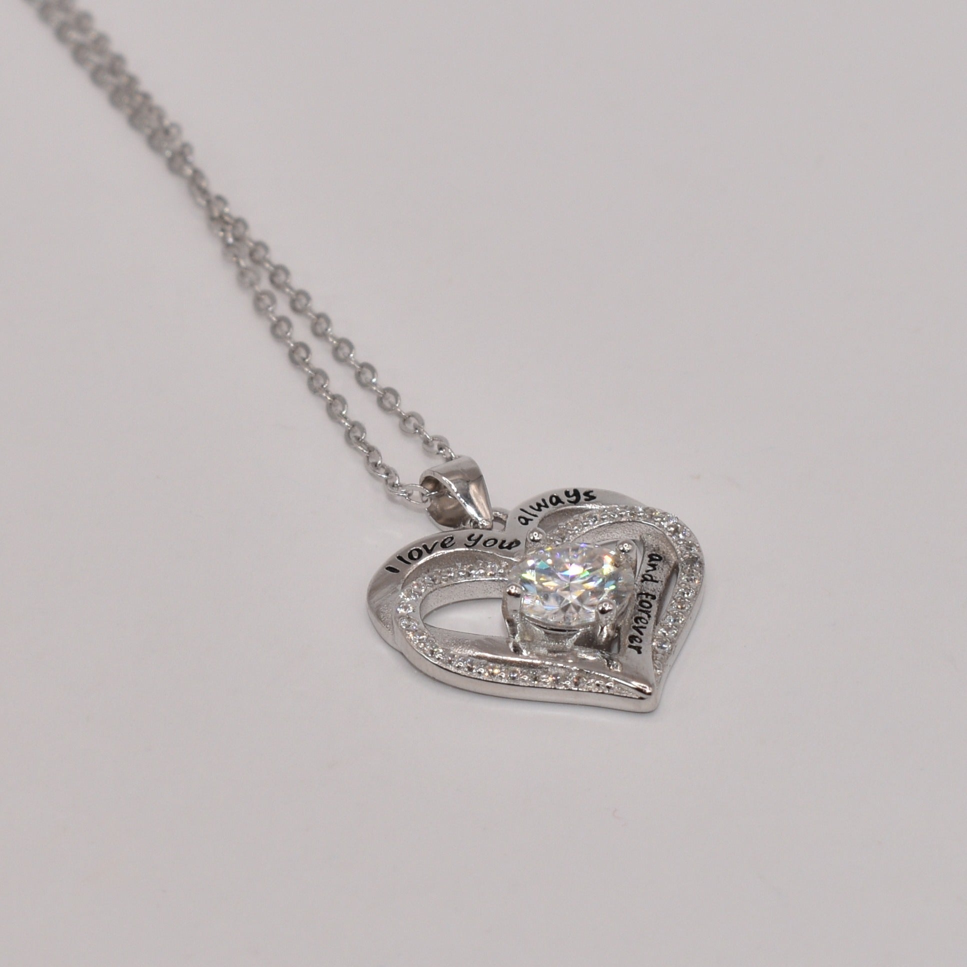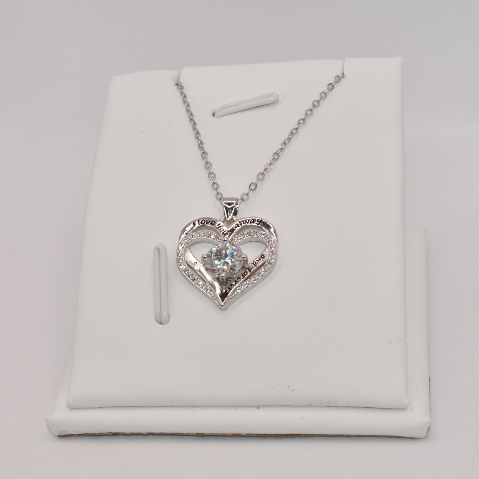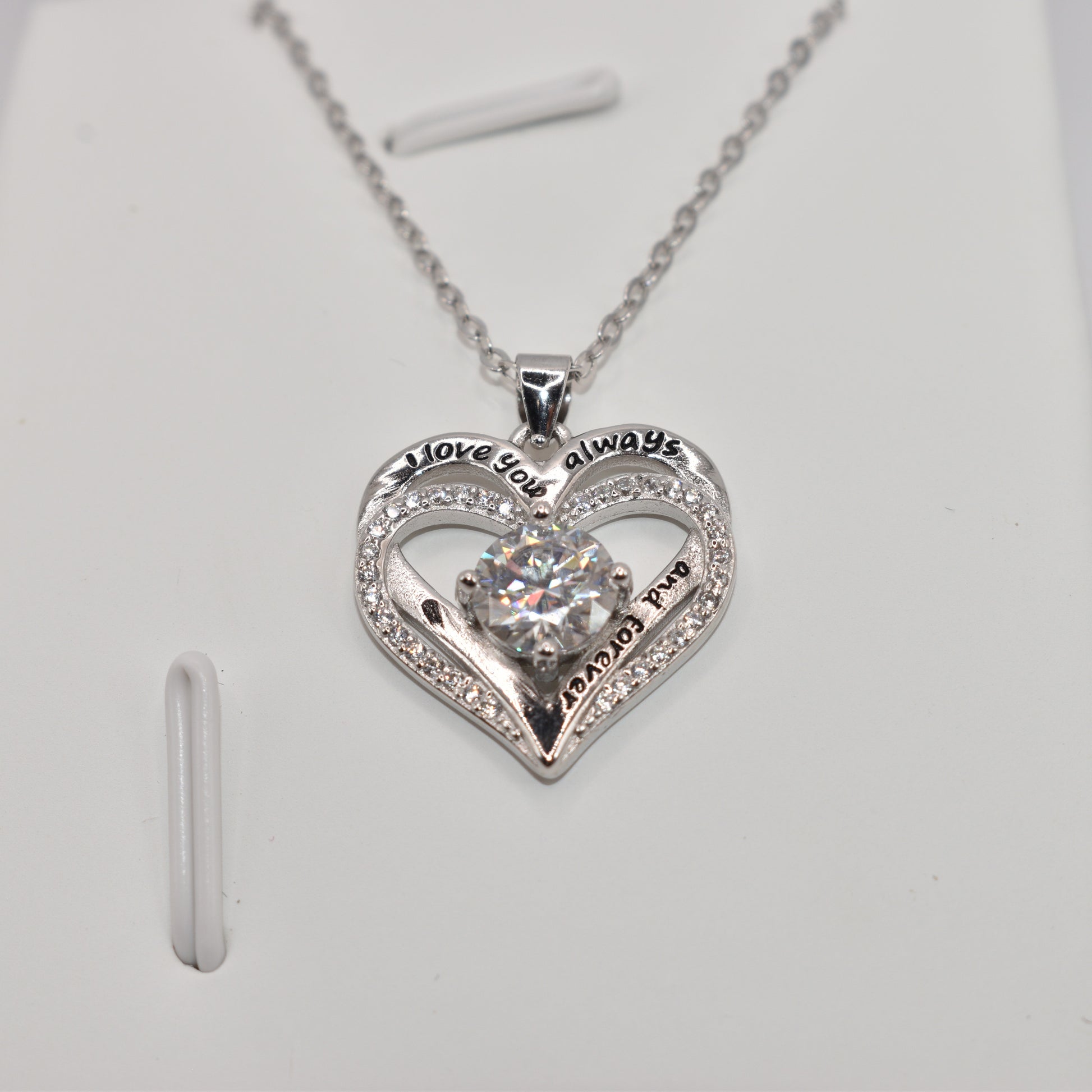 Ships Free. New Certified 1Ct Moissanite Diamond Pendant Necklace. Double Ring Love Heart Necklace hypoallergenic 925 Sterling Silver Necklace. Solid Silver Chain. Chain Length 17.7 inches (45+5cm). Love Necklace Comes With Beautiful Gift Box And Moissanite Certificate.
