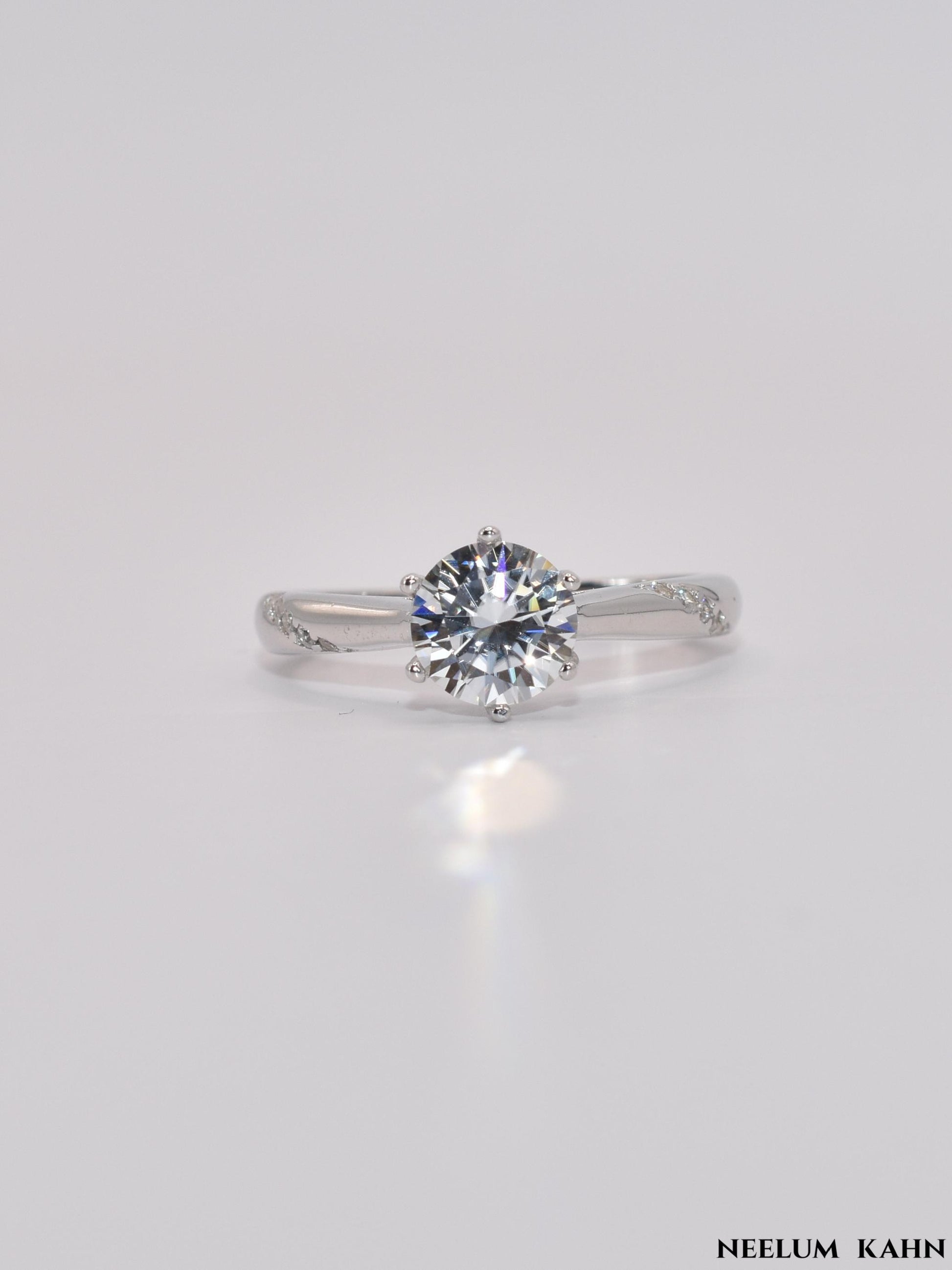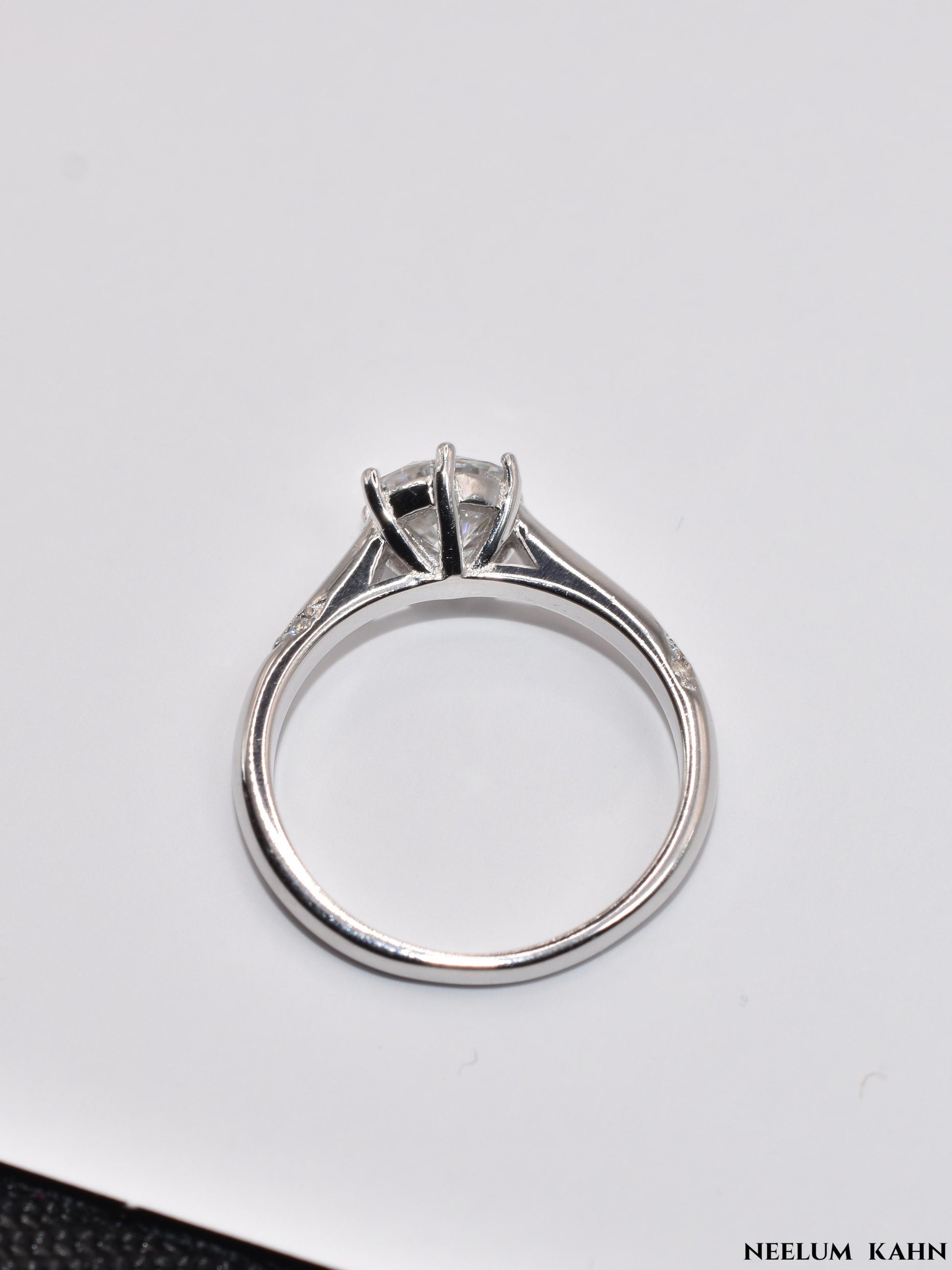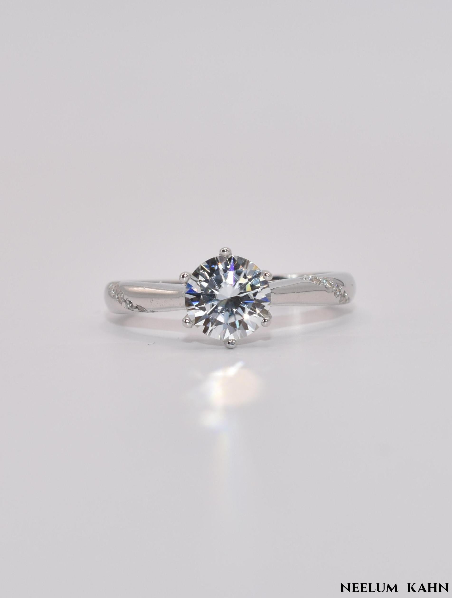 1Ct Moissanite Diamond Ring, 925 Sterling Silver, Round Cut, VVS1 Clarity, 6 Prong Setting, Free Gift LED Heart Ring Box Included