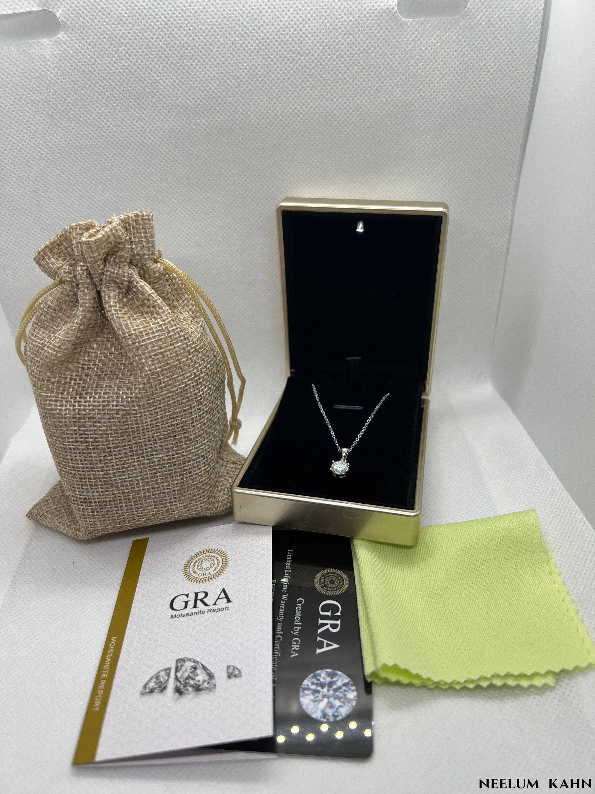 Certified 1ct Moissanite Diamond Pendant S925 Silver Promise Necklace