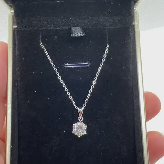 Discover our 1ct 6-Prong Moissanite Diamond Pendant Necklace, crafted from hypoallergenic S925 Sterling Silver. This elegant promise necklace, with a chain length of (40+5)cm, is perfect for girls and women. Ideal for proposals, engagements, weddings, and anniversaries, it makes a luxurious jewelry gift. Certified and shipped with a gift box, enjoy free shipping on this exquisite piece. All jewelry ships from Cincinnati to Ohio, Kentucky, Indiana, Michigan, Pennsylvania, West Virginia, and nationwide with free shipping.