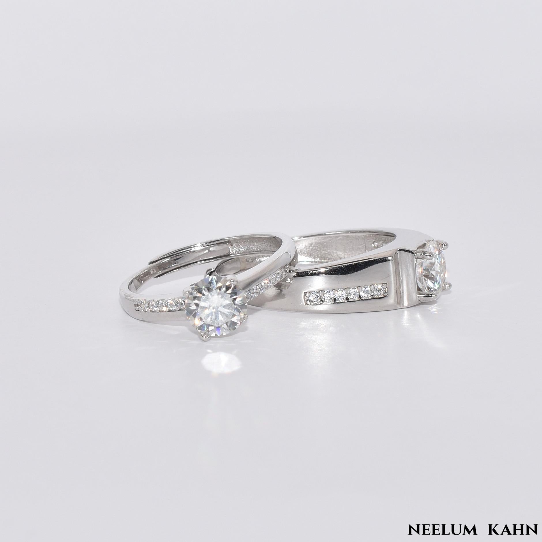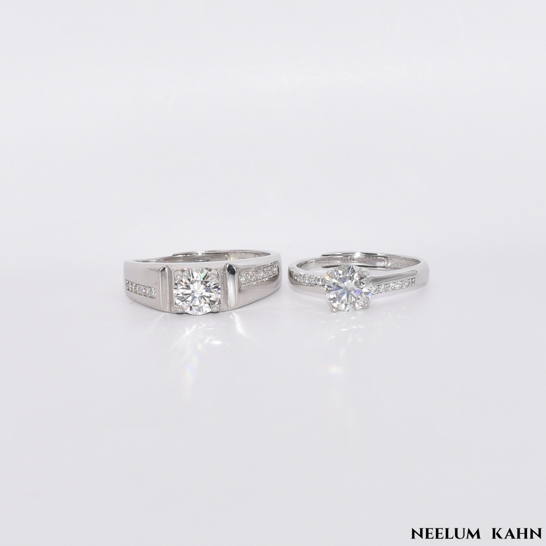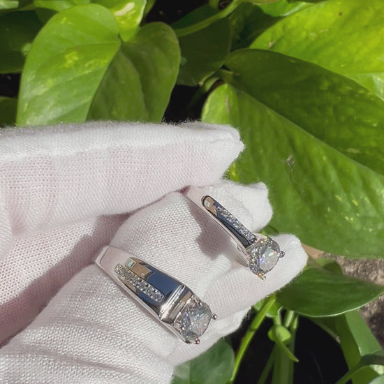 Discover our exquisite 2Ct (1Ct each) Moissanite Diamond Couple Rings, crafted in hypoallergenic S925 Silver with adjustable sizing for a perfect fit. Symbolizing unity and love, these rings are ideal for couples celebrating their bond. Embrace elegance and craftsmanship with a pair that captures your unique story together.