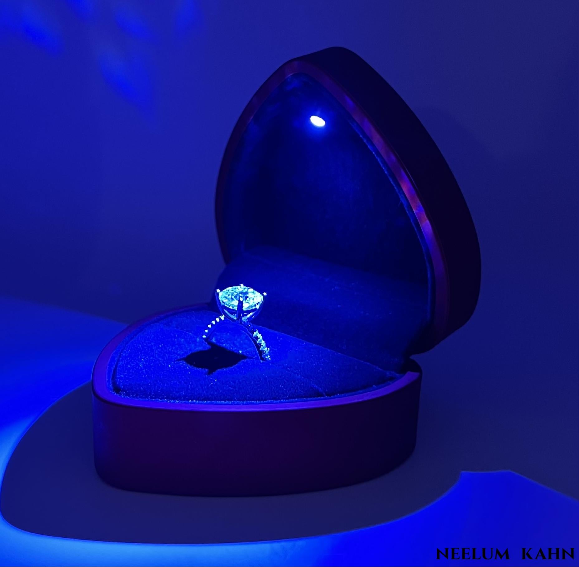 3Ct Moissanite Diamond Ring, 925 Sterling Silver, 18K Gold Plated, Round Cut, VVS1 Clarity, Gift LED Ring Box Included