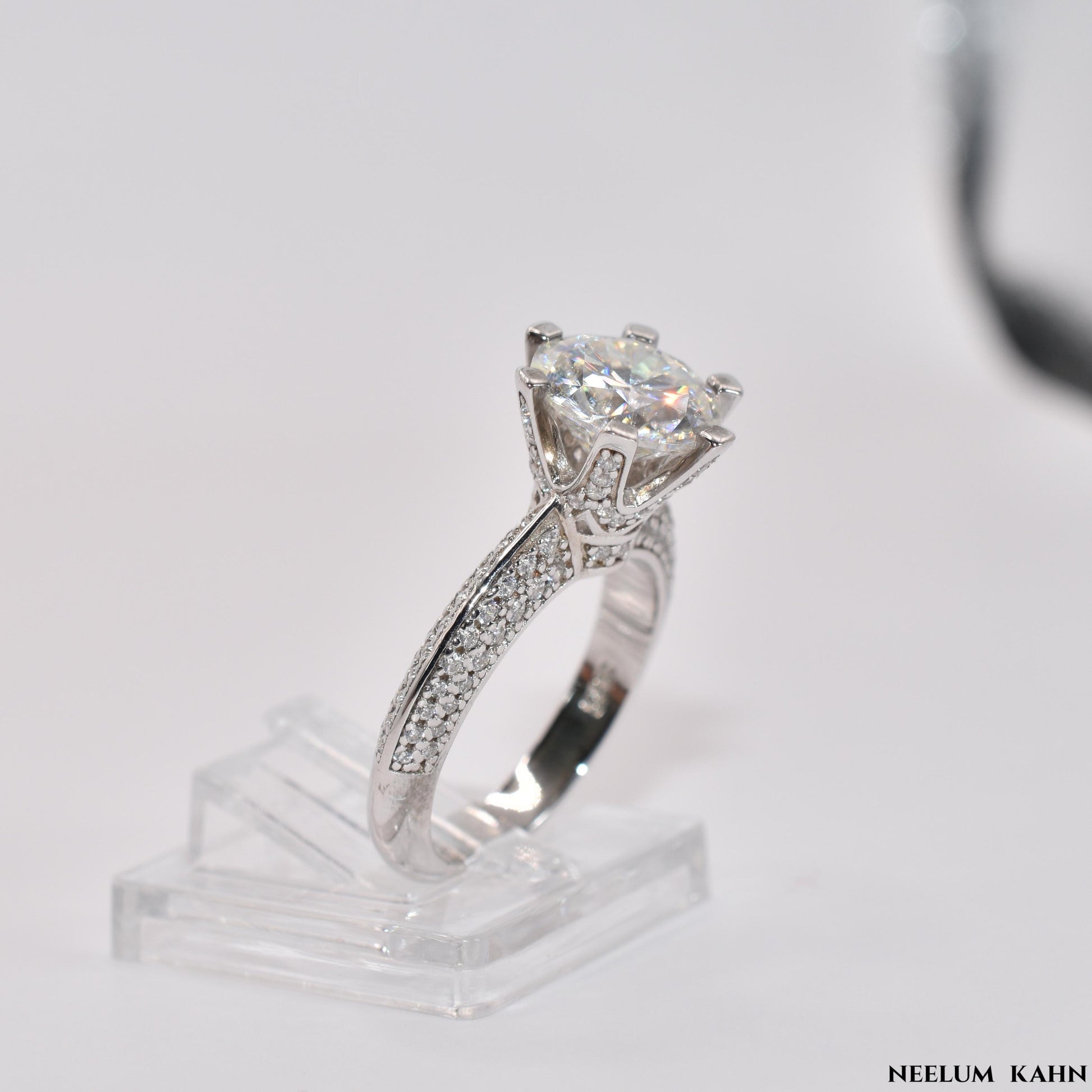 Certified 3Ct Moissanite Diamond Engagement Ring (18k Gold Plated)