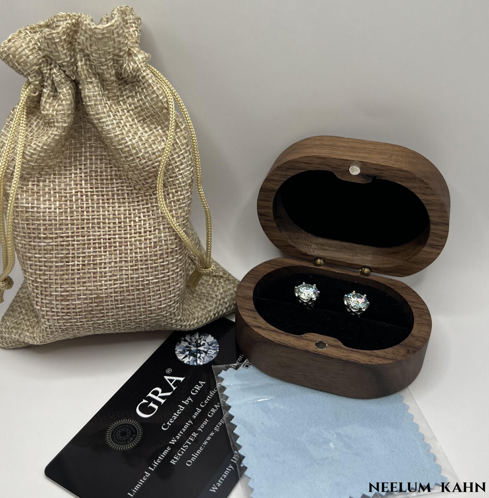 Experience elegance with our New Certified 4Ct (2Ct+2Ct) Moissanite Diamond Stud Earrings. Crafted from 925 Sterling Silver with a platinum plating, these exquisite earrings are both luxurious and timeless. Each pair comes with a Moissanite Certificate and is beautifully presented in a Wooden Gift Box, making them perfect for gifting or personal indulgence. Enjoy the convenience of Free Shipping on these stunning earrings, ensuring a seamless delivery to your doorstep. Elevate your style with these sparkling studs, ideal for any occasion from casual outings to special events.