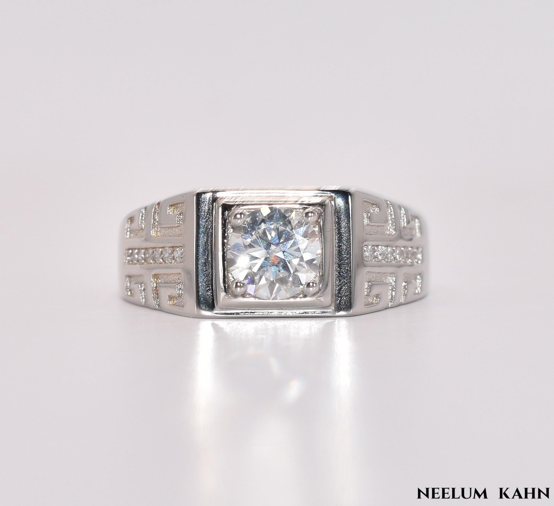 Shop the Certified 1Ct Moissanite Diamond Ring for men, featuring D color, VVS1 clarity, and an adjustable ( size 10 to 12) design. Crafted from hypoallergenic solid 925 sterling silver with white gold plating, it’s perfect for engagements, weddings, anniversaries, birthdays, and Christmas. Includes LED light ring box, gift sack, cleaning cloth, and paperwork. Free shipping and free box engraving available.