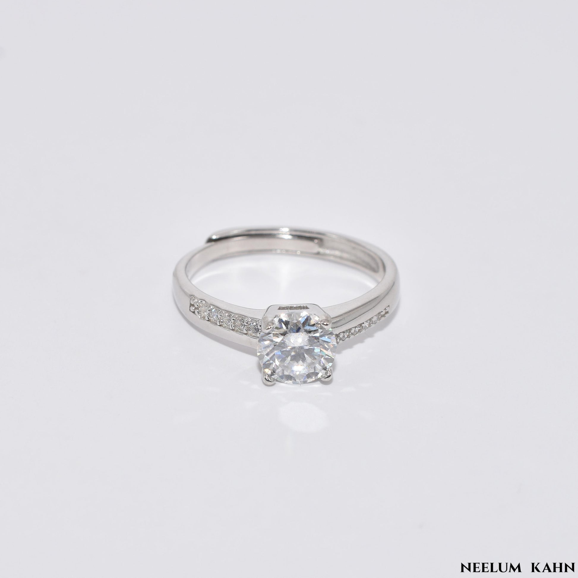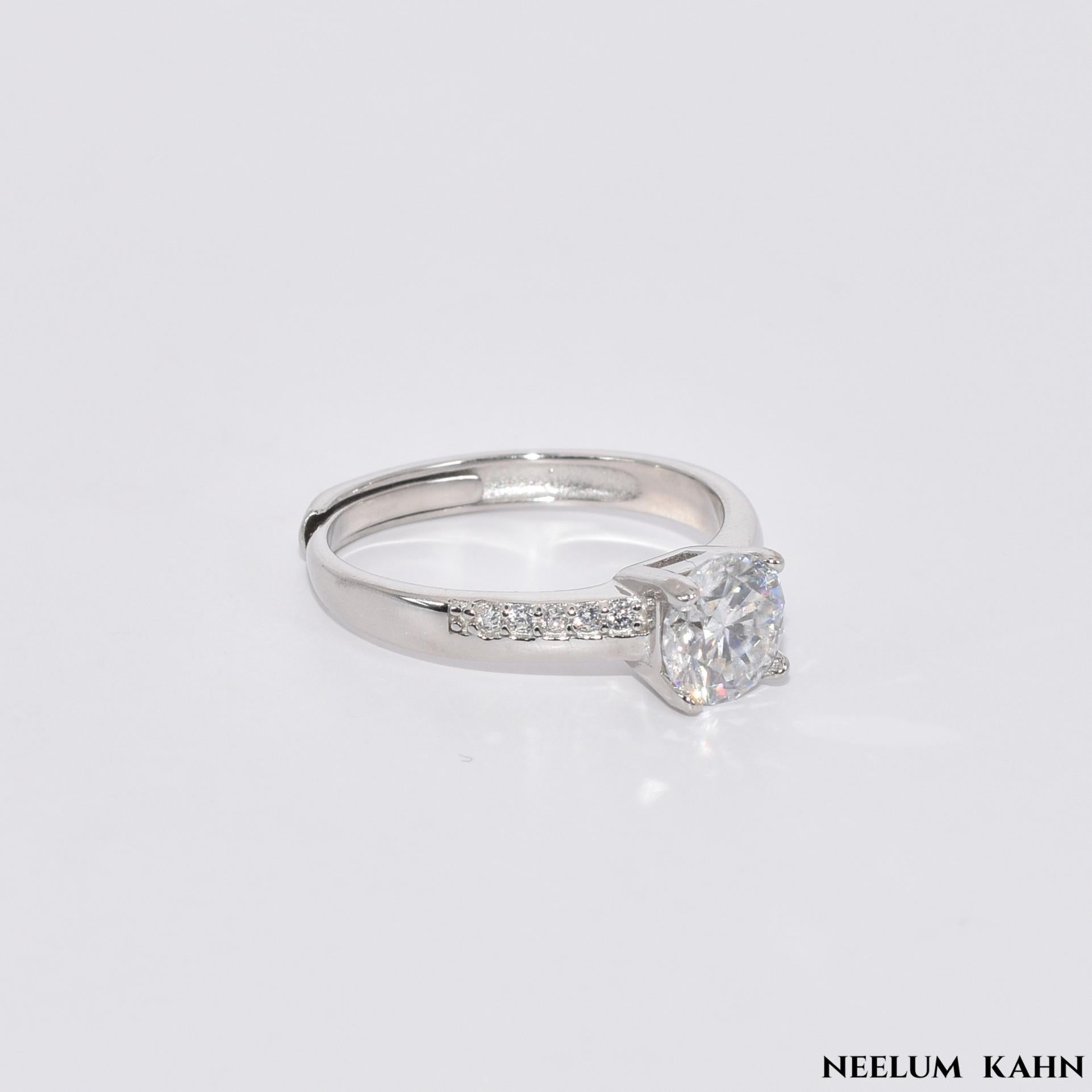 Certified 1Ct Moissanite Diamond Engagement Ring Adjustable