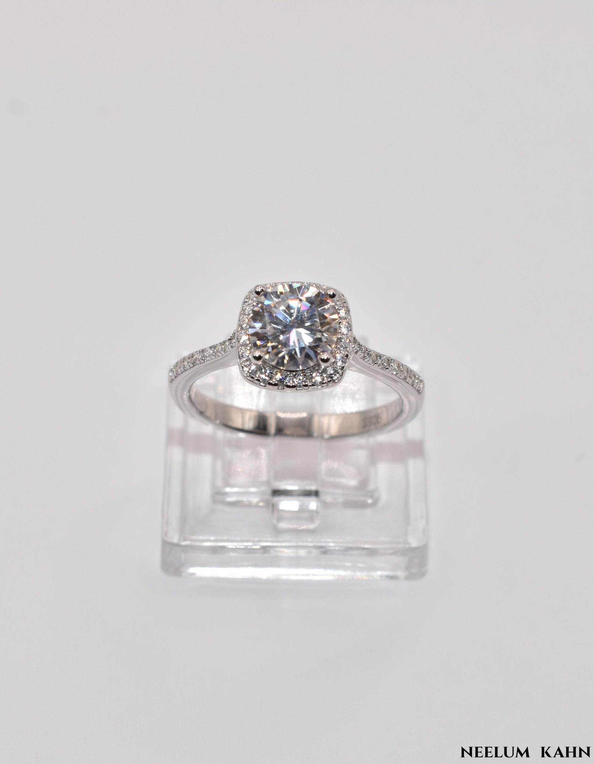 Discover the Certified 1Ct Moissanite Diamond Ring for women, crafted from solid 925 sterling silver with white gold plating. Features D color, VVS1 clarity, and available in sizes 5-9. Perfect for engagements, weddings, anniversaries, birthdays, and Christmas. Includes LED light ring box, gift sack, cleaning cloth, and paperwork. Free shipping and box engraving available.