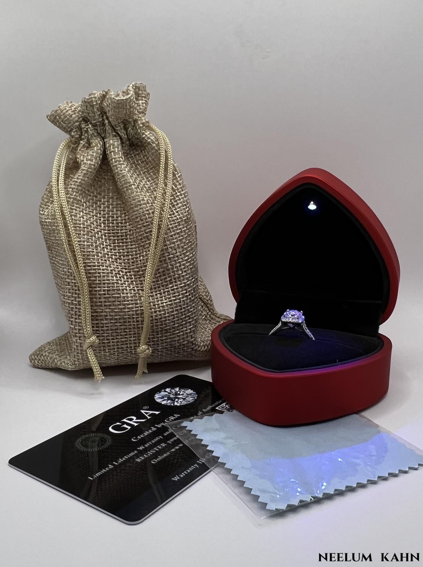 Certified 1Ct Moissanite Diamond Proposal Ring for Women – S925 Silver White Gold Plated | Red LED Gift Heart Shape Ring Box Included