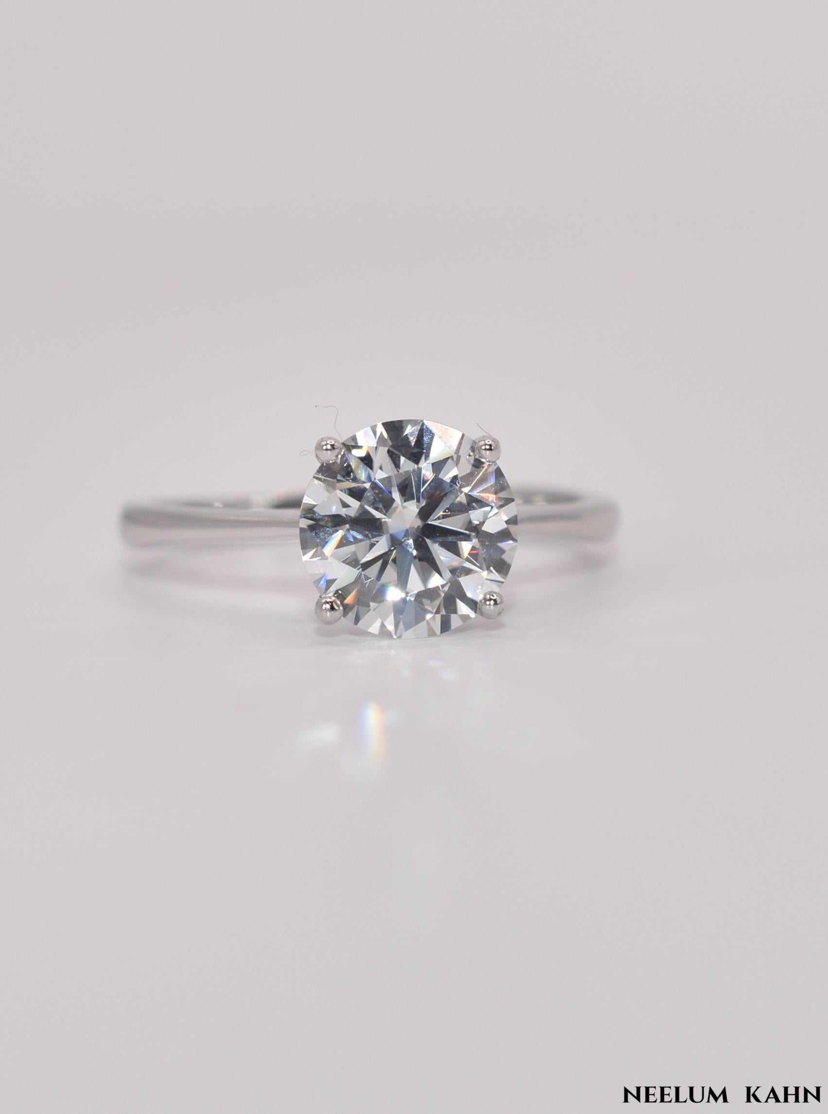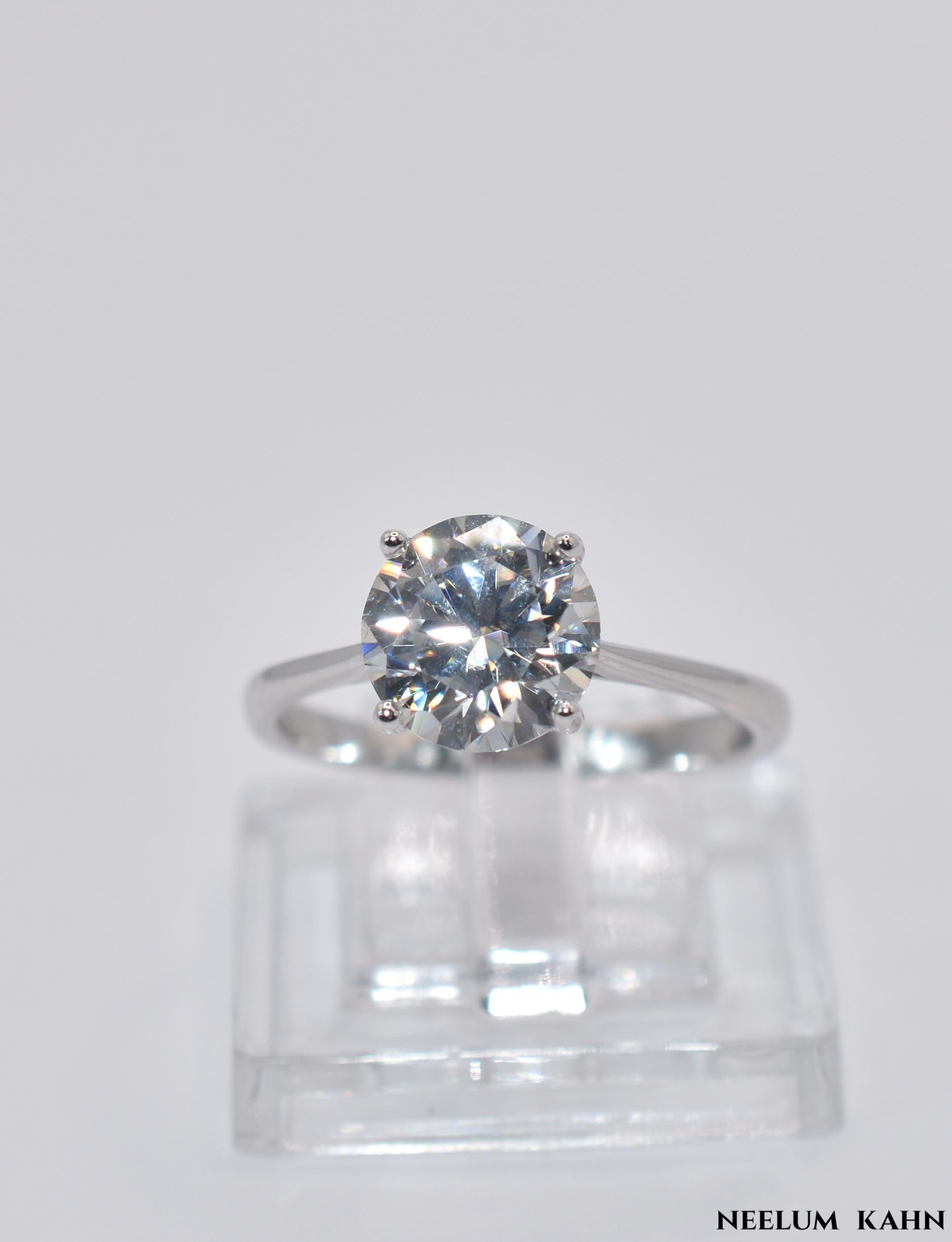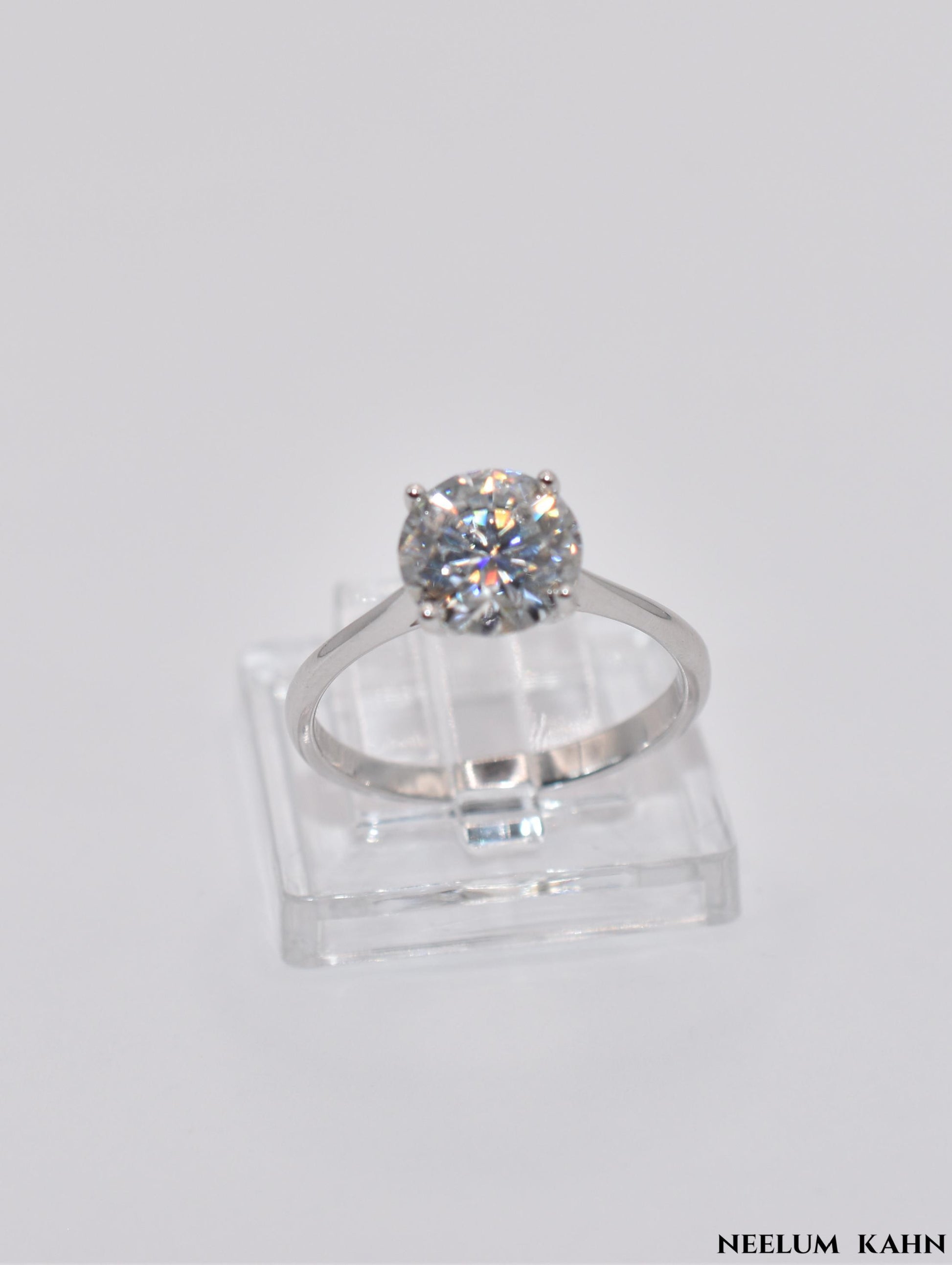 2Ct Round Cut Moissanite Ring, 925 Sterling Silver, D Color VVS1, with LED Box and Certificate