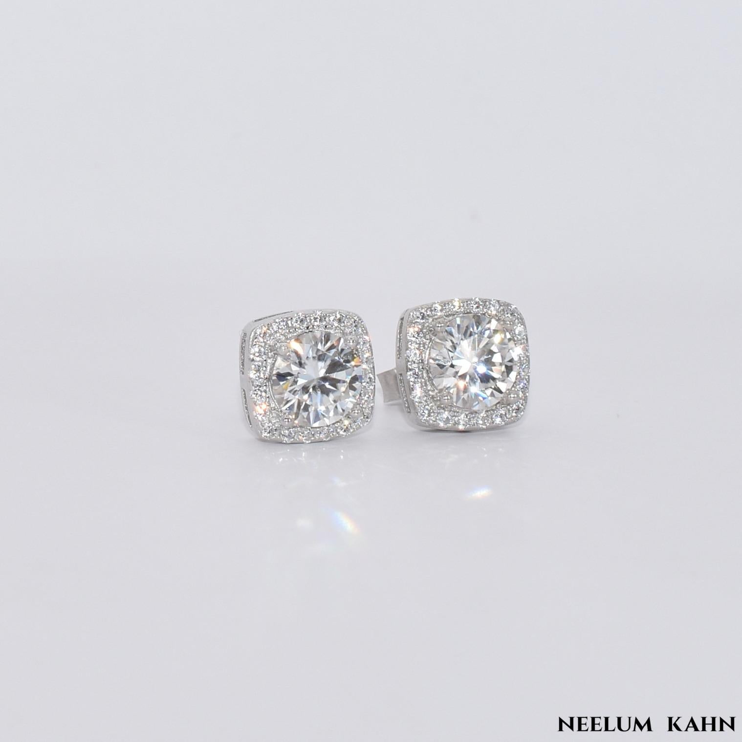 Certified 2Ct Moissanite Stud Earrings – Square 925 Silver