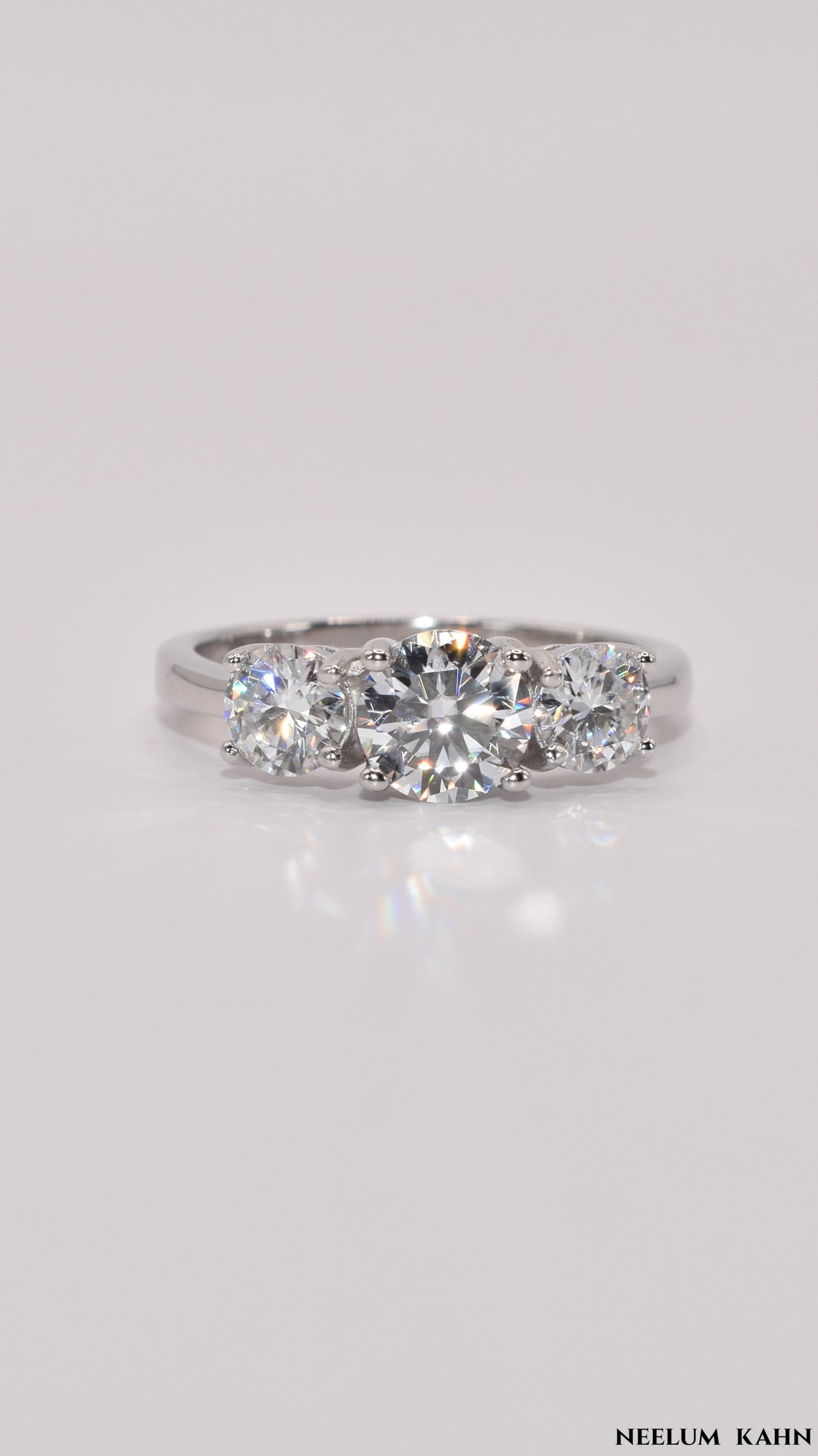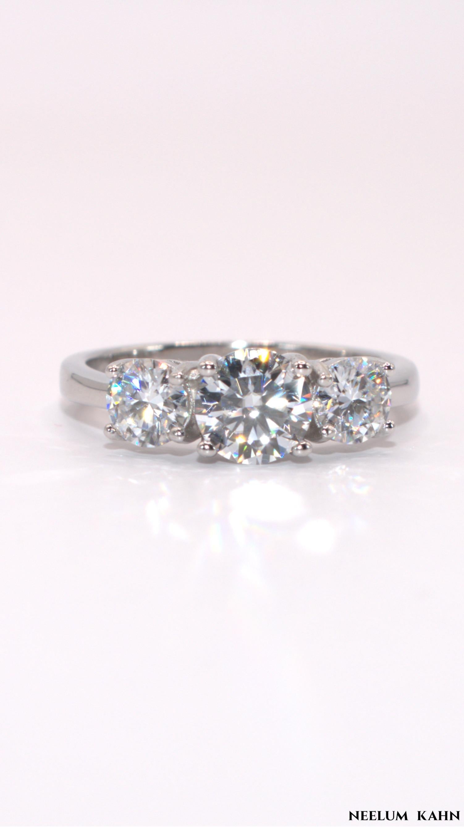 Elegant certified 2Ct (1+0.5+0.5) Moissanite Diamond Three-Stone Ring in solid 925 sterling silver. Perfect for proposals, engagements, weddings, anniversaries, birthdays, and Christmas gifts. Includes a gift box, gift sack, jewelry cleaning cloth, and certification. A timeless and meaningful gift for her! These rings are hypoallergenic sterling silver.