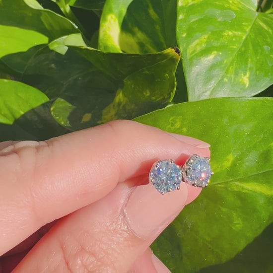 Shop new 2Ct (1Ct each) Certified Moissanite Diamond Stud Earrings for men and women. 18k Gold platted, crafted with 925 Sterling Silver, featuring Color D and VVS1 clarity. Perfect for any occasion. Free shipping and custom box engraving available. Comes with an LED light gift box, gift sack, cleaning cloth, and certification paperwork. Ideal as a luxury gift!. They are hypoallergenic sterling silver earrings.