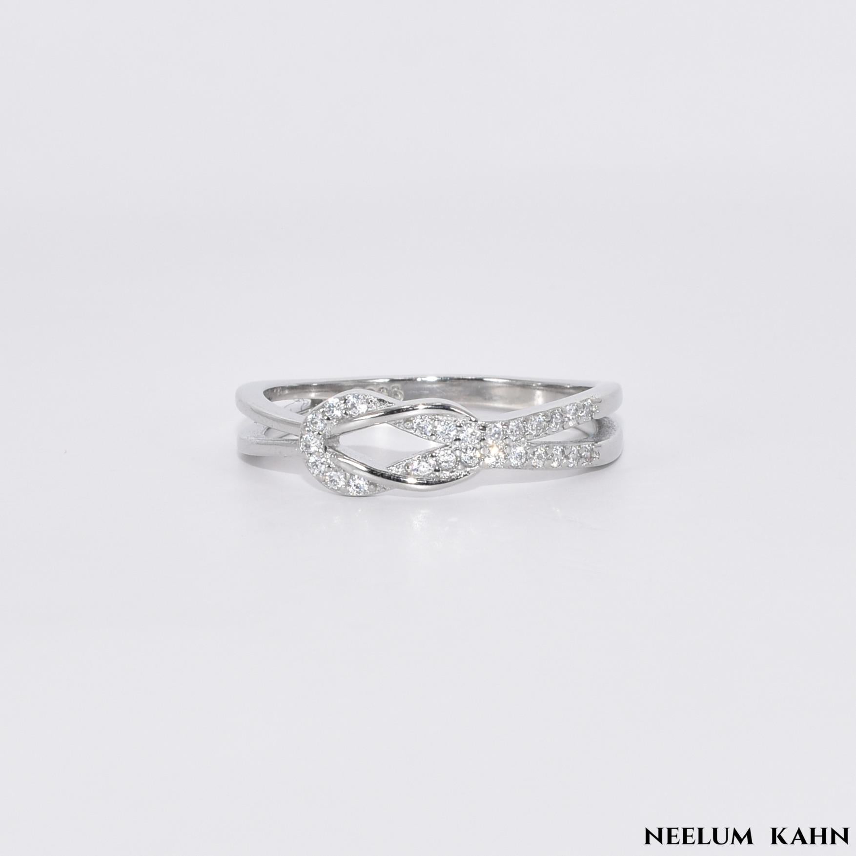 S925 Silver Knot Shape Zircon Ring