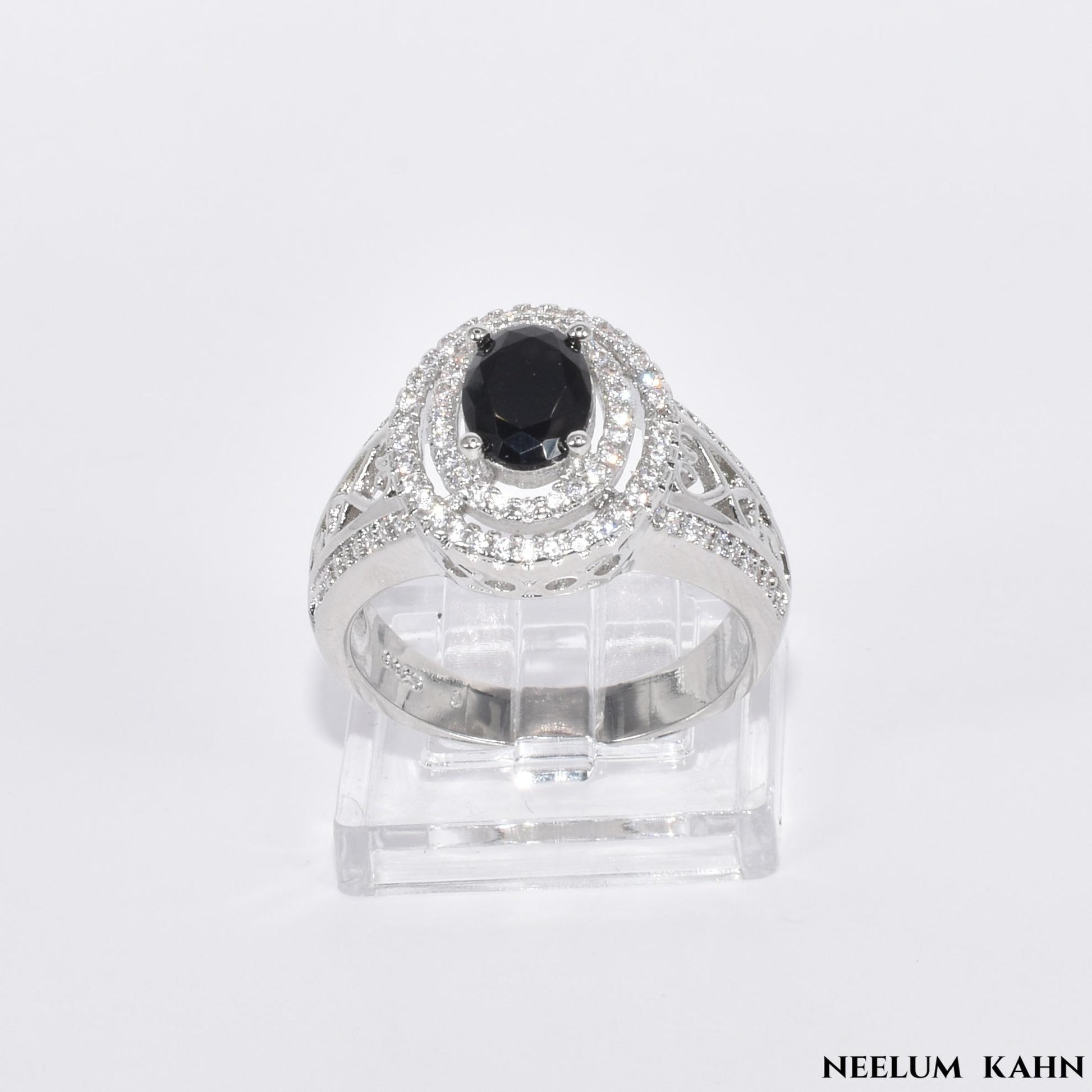 Sterling Silver Black & White Zircon Ring for Men & Women